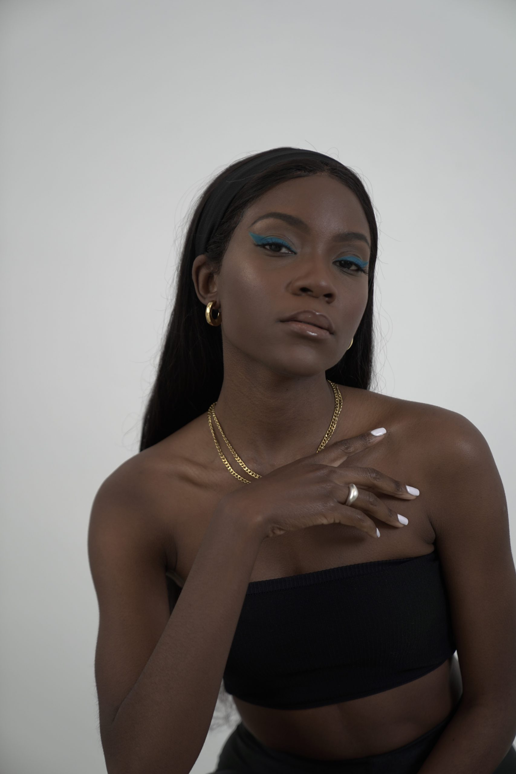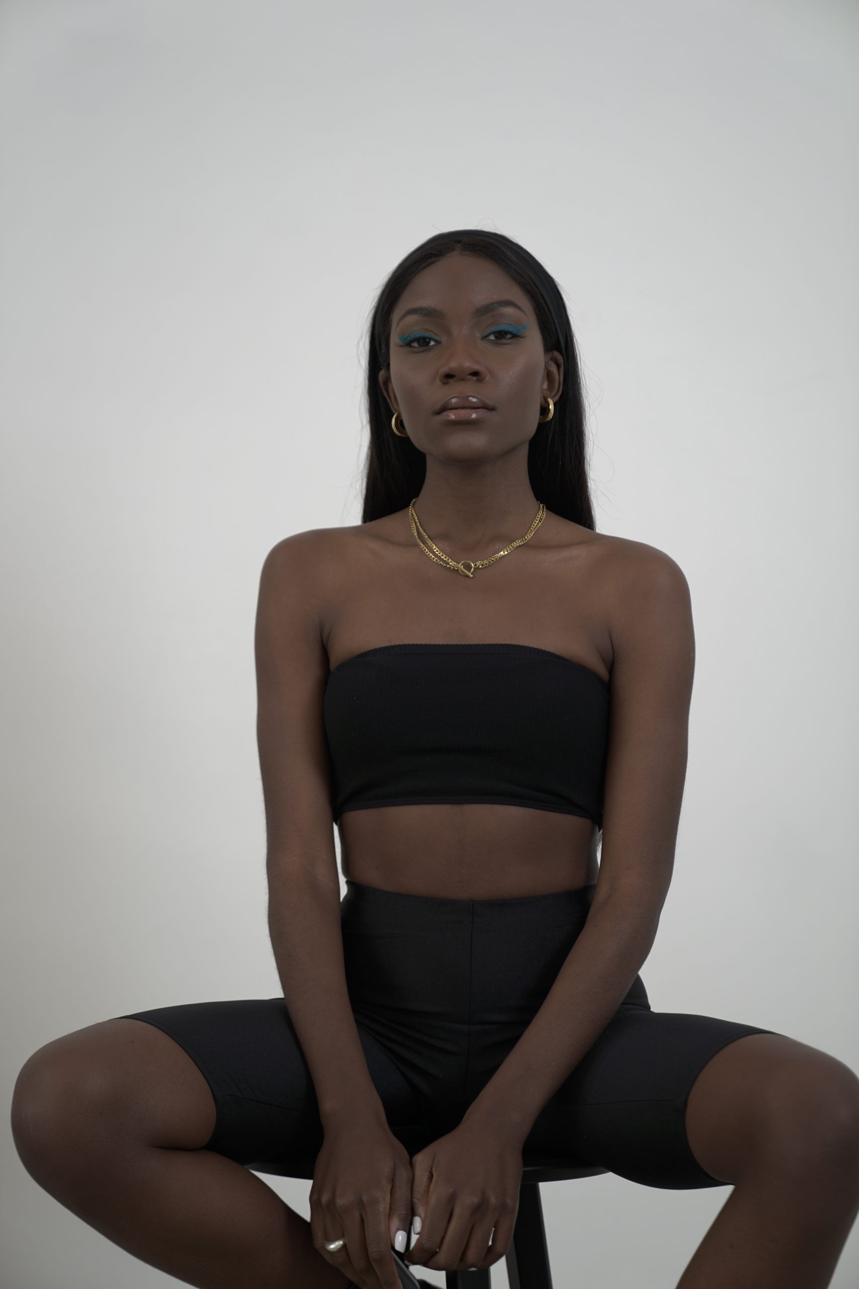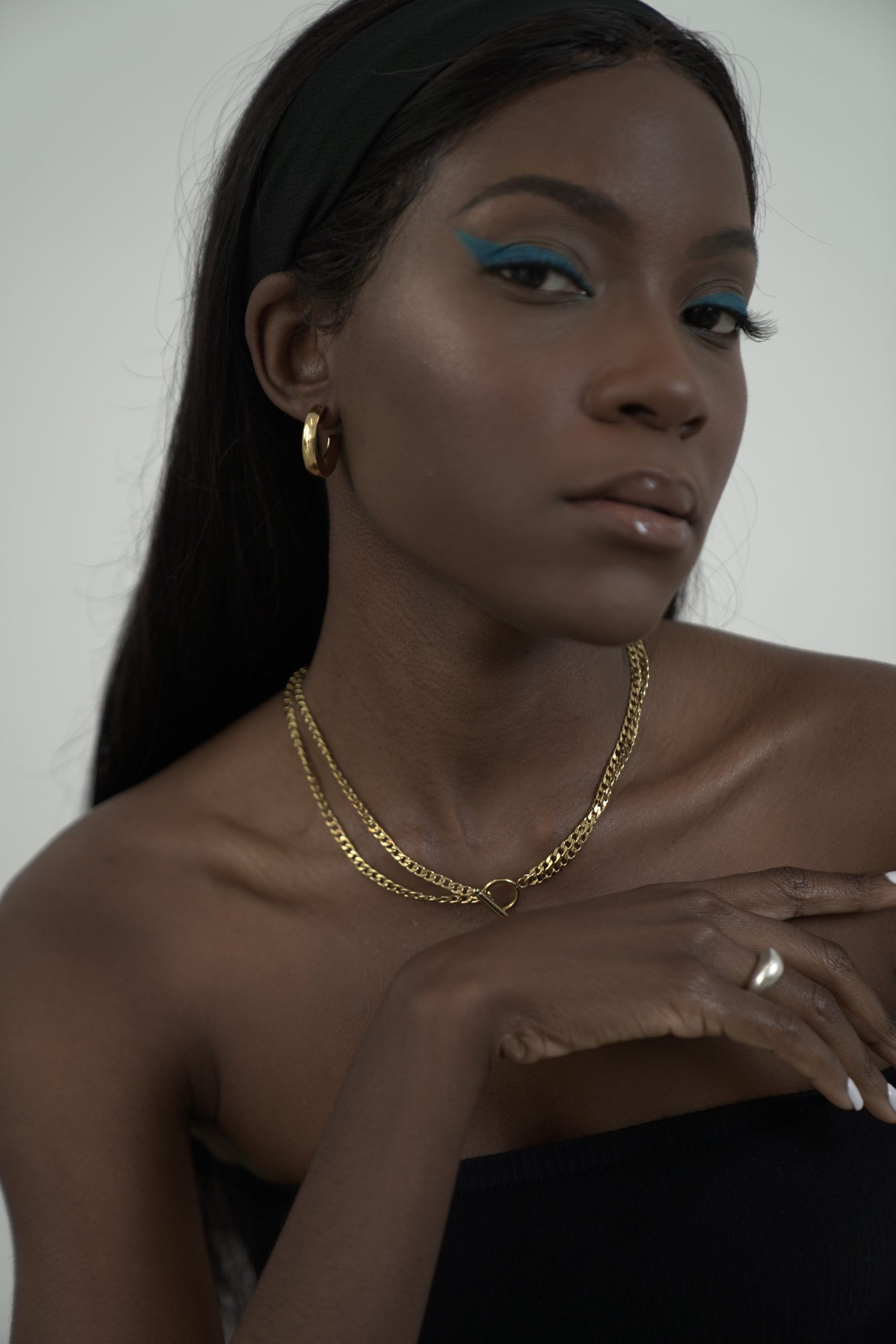 Handmade necklace with double row steel chain and round steel clasp which can be worn on the front, side or back.